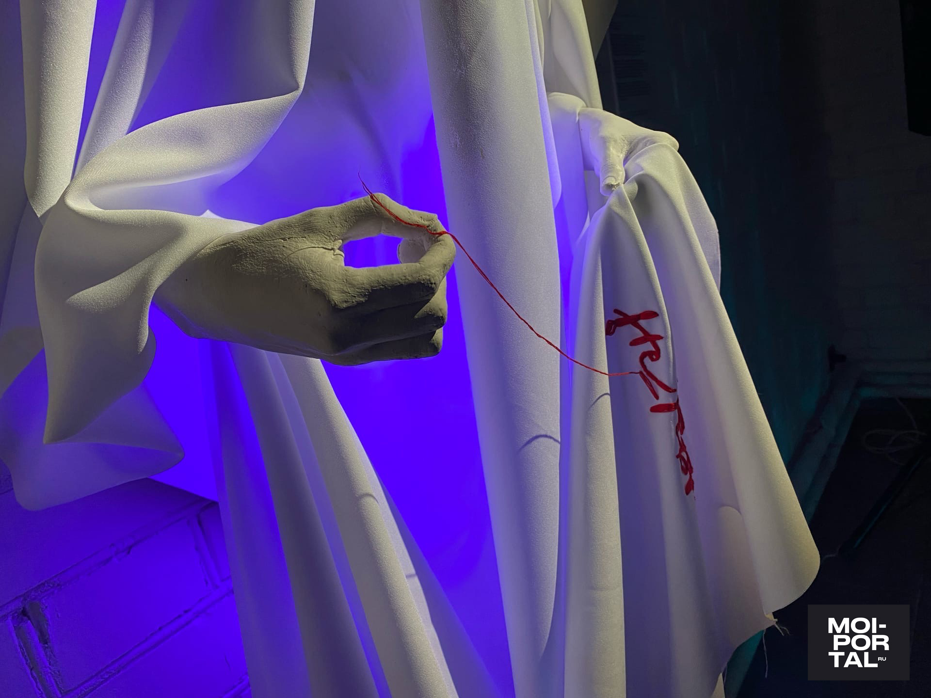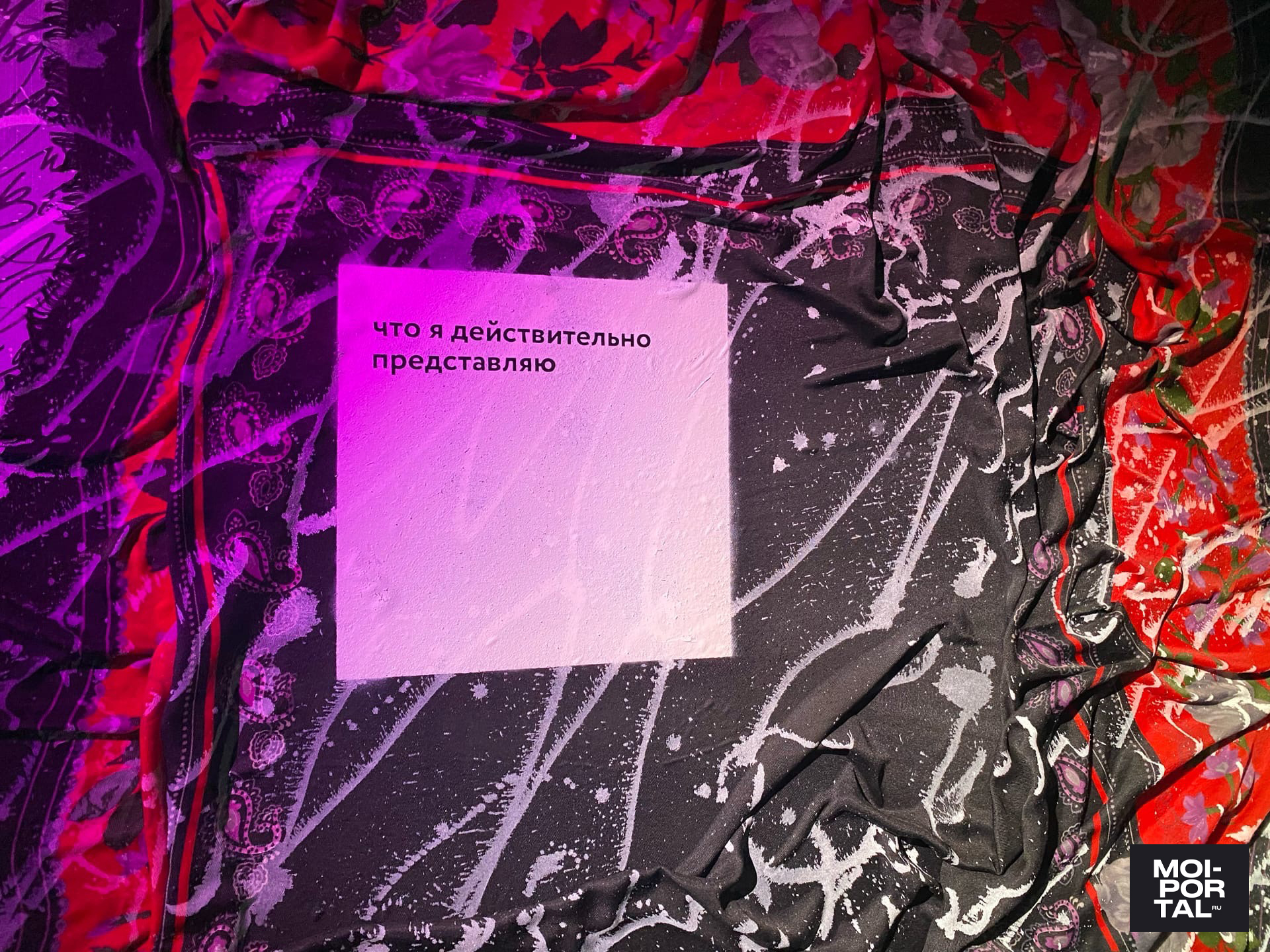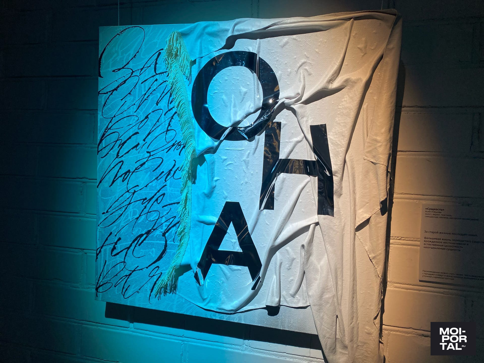 «Идея пришла от холста, на котором был изображен платок. Я просто совмещала каллиграфию и реалистичность. Потом я уже начала задумываться: а почему платок? И вспомнила, что с платком связано много смыслов, в том числе и мои личные ассоциации. Я родилась в мусульманской семье, там по-другому относятся к женщине. Также сыграло свою роль то, что мы родились в России, а это патриархальная страна. А каллиграфия для меня — это способ выразиться, и все это связалось. Таким образом, свои мысли, которые касаются этой темы, я выразила в виде выставки», — рассказала редакции Moi-portal.ru Асия Утяшева.