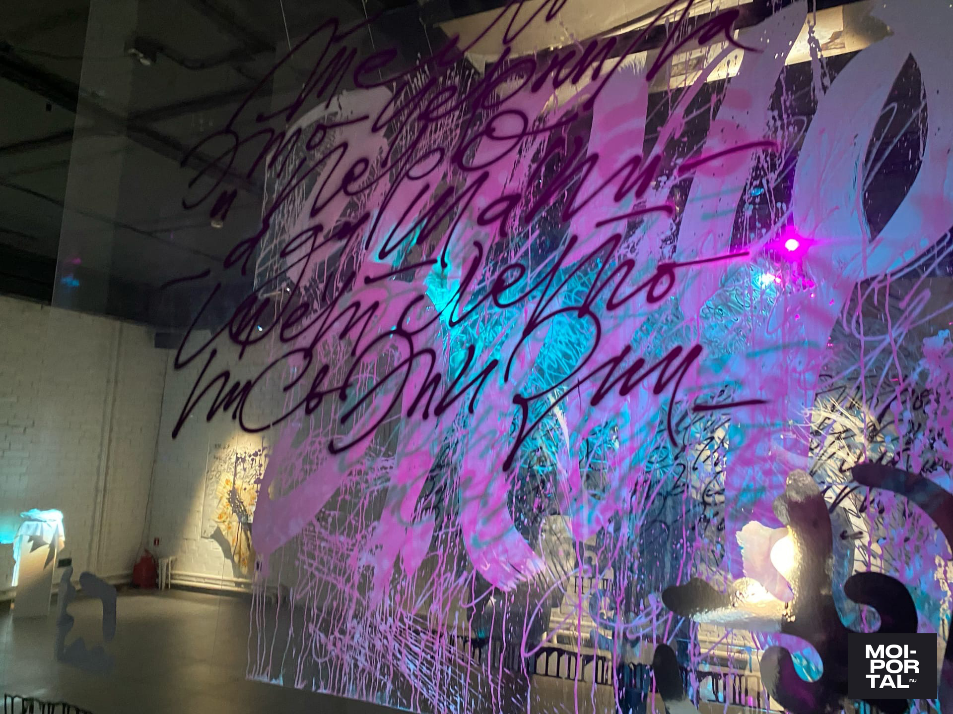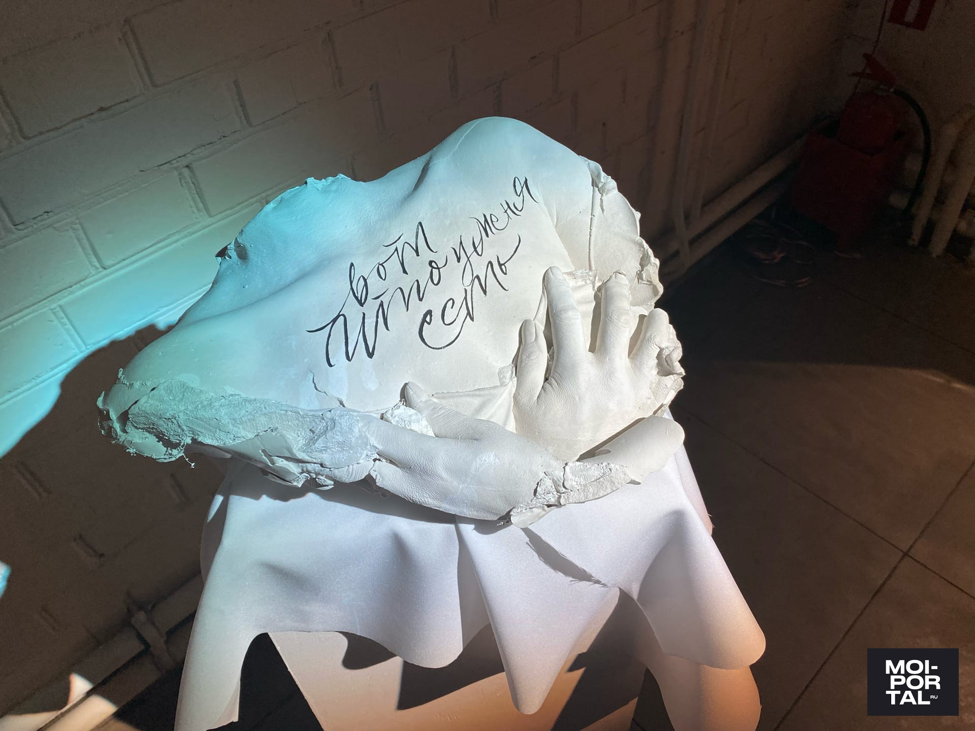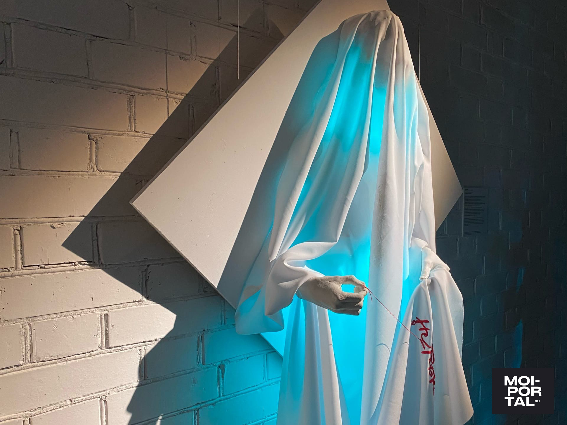 «Идея пришла от холста, на котором был изображен платок. Я просто совмещала каллиграфию и реалистичность. Потом я уже начала задумываться: а почему платок? И вспомнила, что с платком связано много смыслов, в том числе и мои личные ассоциации. Я родилась в мусульманской семье, там по-другому относятся к женщине. Также сыграло свою роль то, что мы родились в России, а это патриархальная страна. А каллиграфия для меня — это способ выразиться, и все это связалось. Таким образом, свои мысли, которые касаются этой темы, я выразила в виде выставки», — рассказала редакции Moi-portal.ru Асия Утяшева.