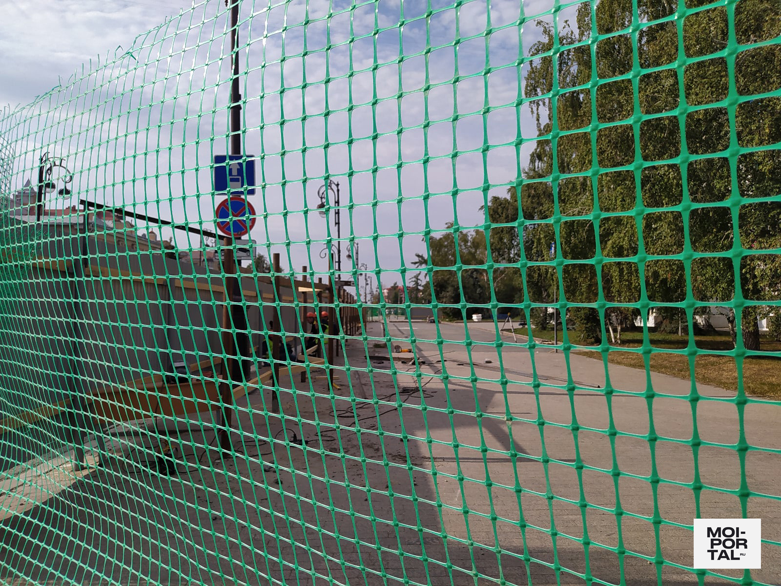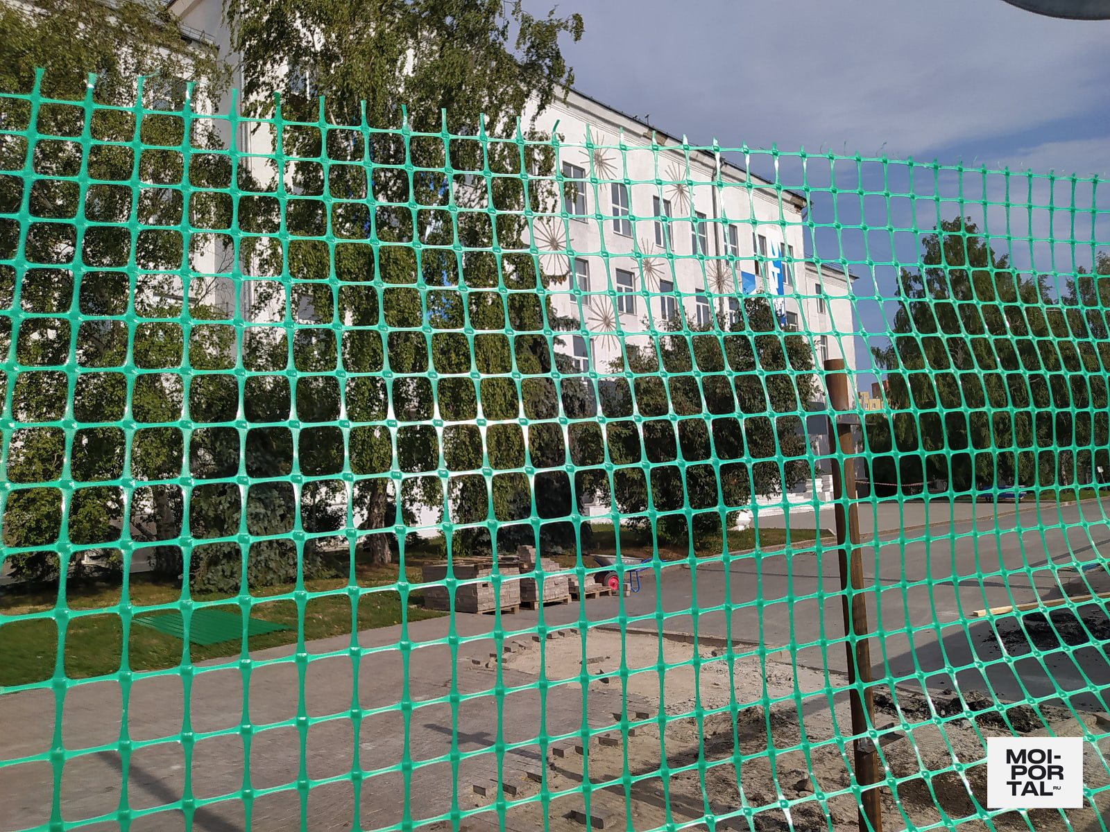 Корпус обнесли сеткой и забором, вокруг здания рабочие начали снимать брусчатку. Moi-portal.ru сделал несколько фото, на которых запечатлен вид СоцГума перед сносом.