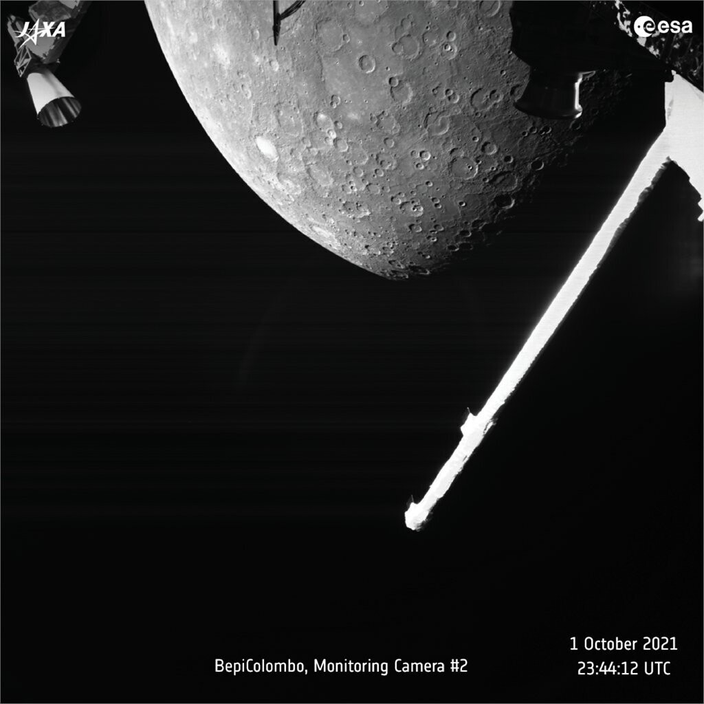 На черно-белых фотографиях можно увидеть северную часть полушария Меркурия в близости 2420 километров, которое сделали спустя десять минут после сближения с ним. По очертаниям можно различить кратеры Кальвино и Лермонтов, равнину Сихту и структурные элементы зонда. BepiColombo приблизился к планете на минимальные 199 километров с ночной стороны, но сделать снимок из-за слишком горячих условий не удалось.