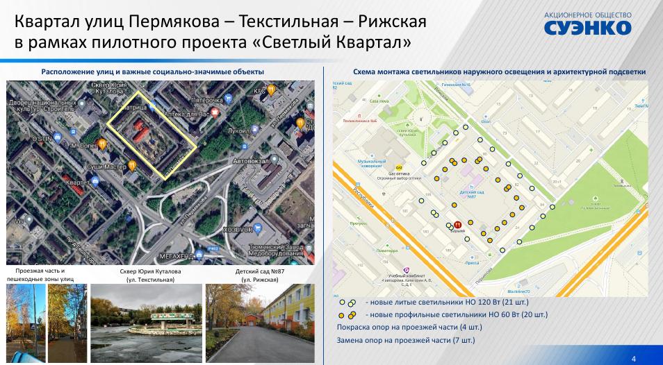 Глава города Руслан Кухарук обсудил с директором АО «Сибирско-Уральская энергетическая компания» Данилом Анучиным реализацию двух проектов: создание уличного освещения в кварталах улиц Пермякова — Текстильной — Рижской, а также в квартале улиц Семакова — Кирова — Хохрякова — Володарского. Инвестор реализует «Светлый квартал» за свой счет.