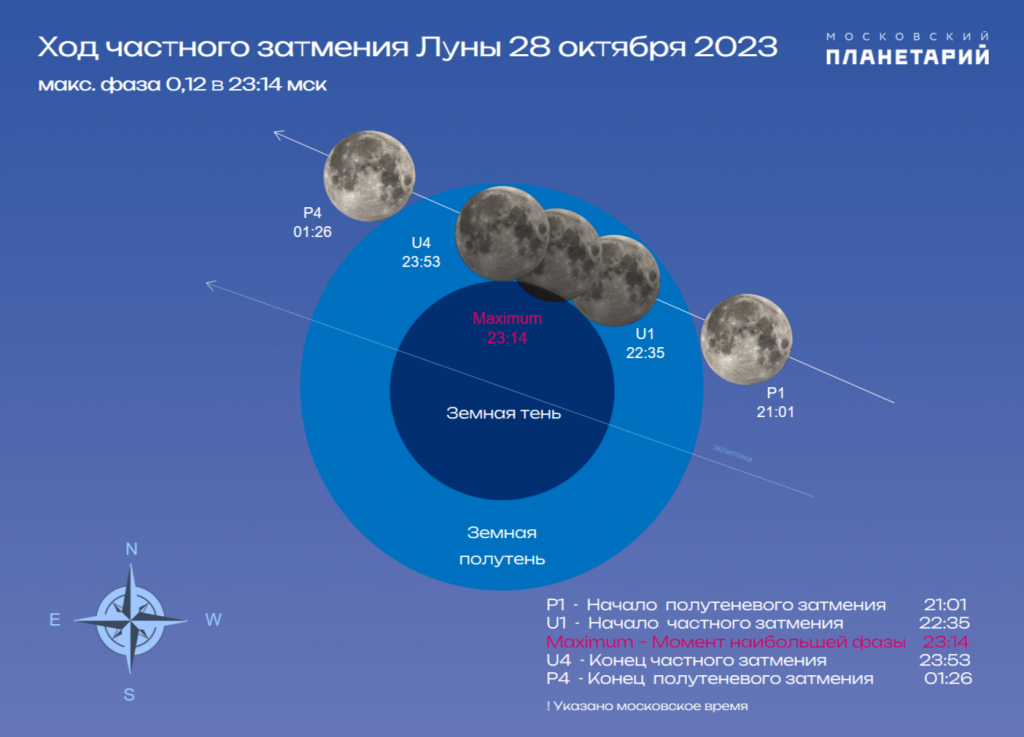 Частичное лунное затмение, как сообщает пресс-служба Московского планетария, будет видно везде, где спутник Земли находится над горизонтом. В Сибири его можно будет наблюдать во второй половине ночи, с 0:36 до 1:53. В этот же день случится полнолуние.