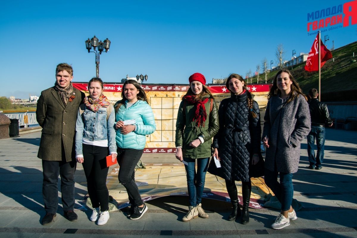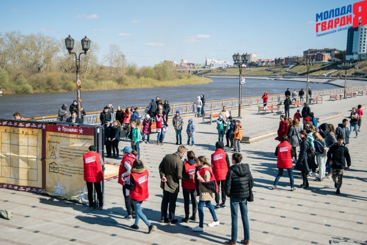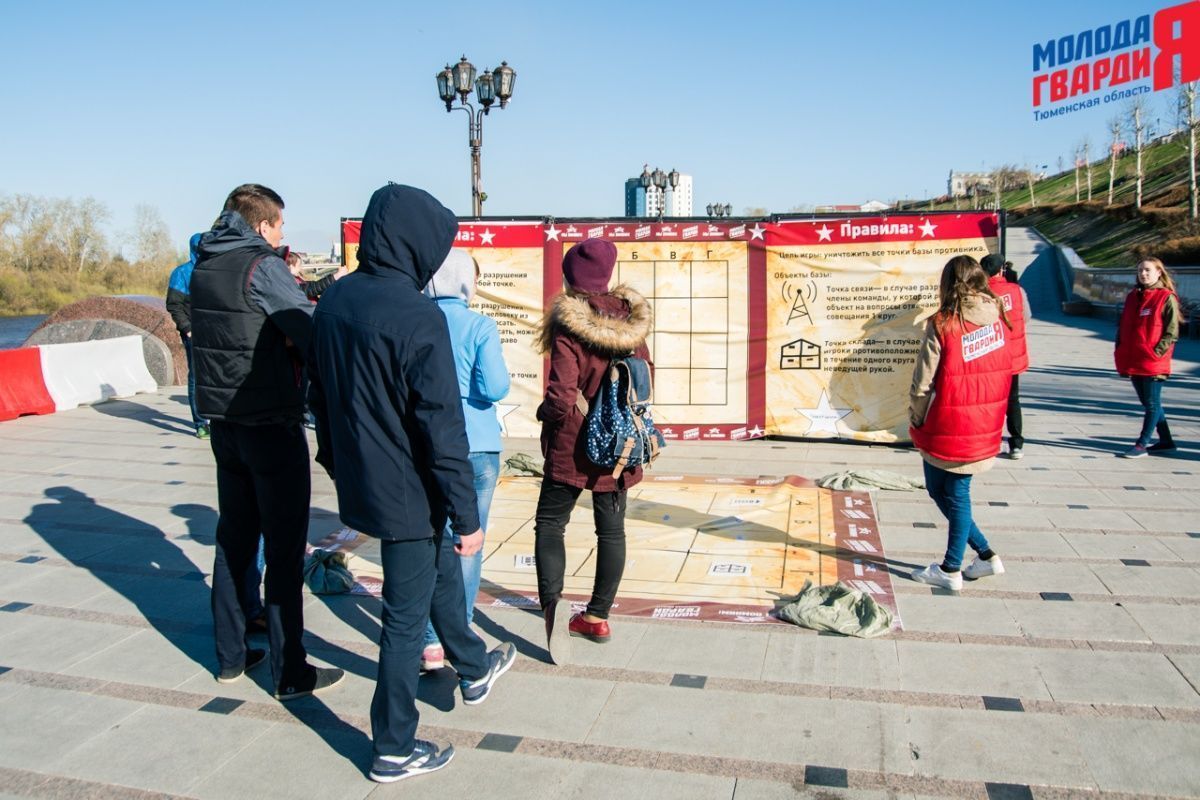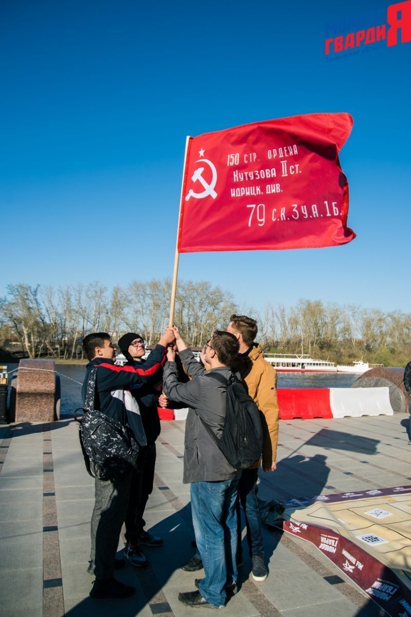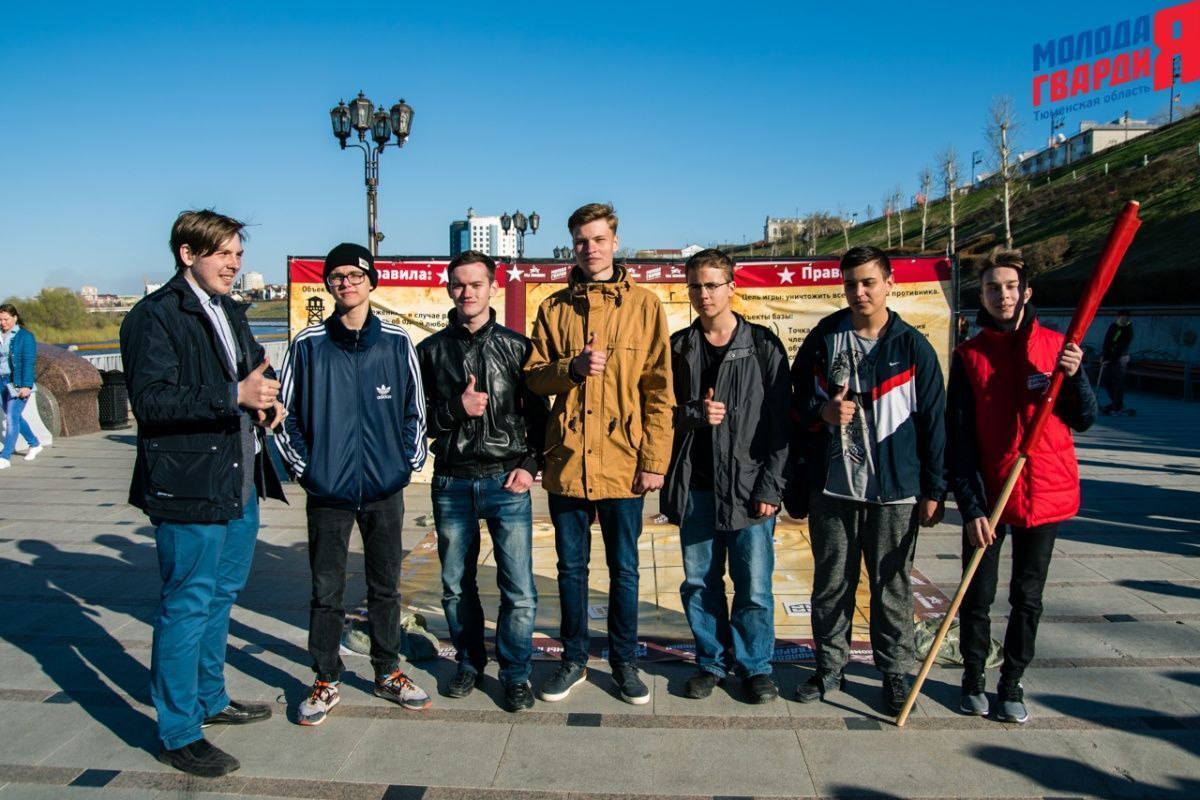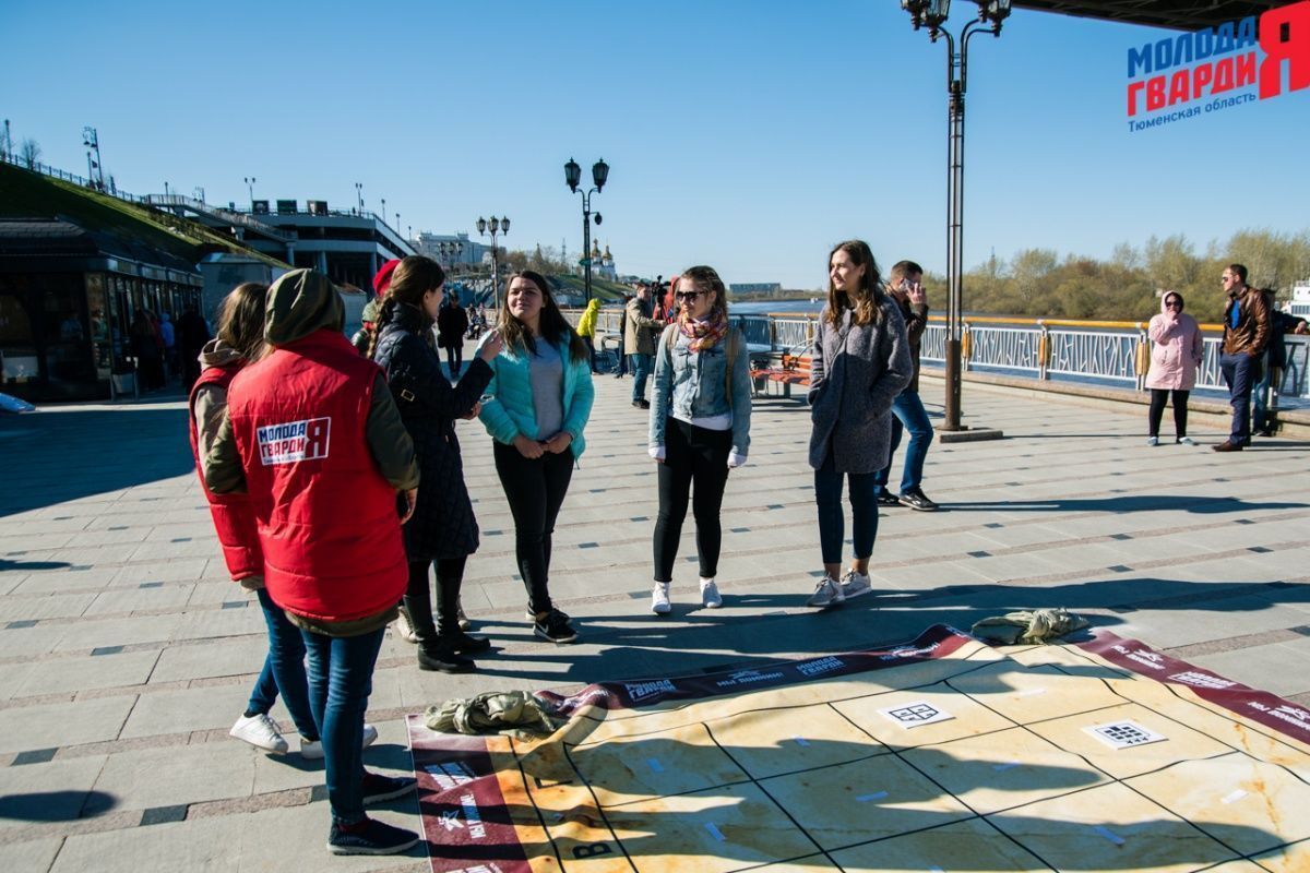 Игра «Знамя Победы» состоялась на Набережной города Тюмени. В ходе игры команды из 5 человек отвечали на тематические вопросы о Великой Отечественной войне и всеми силами попытались разрушить штаб и опорные пункты противника. Игра прошла на втором ярусе Набережной, лучшим командам были вручены призы и памятные подарки, а победители примут участие в водружении знамени Победы.