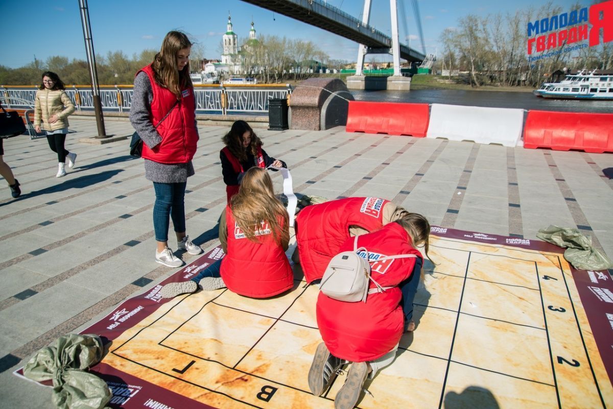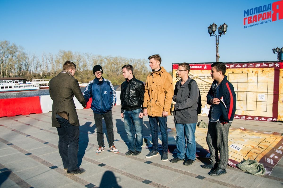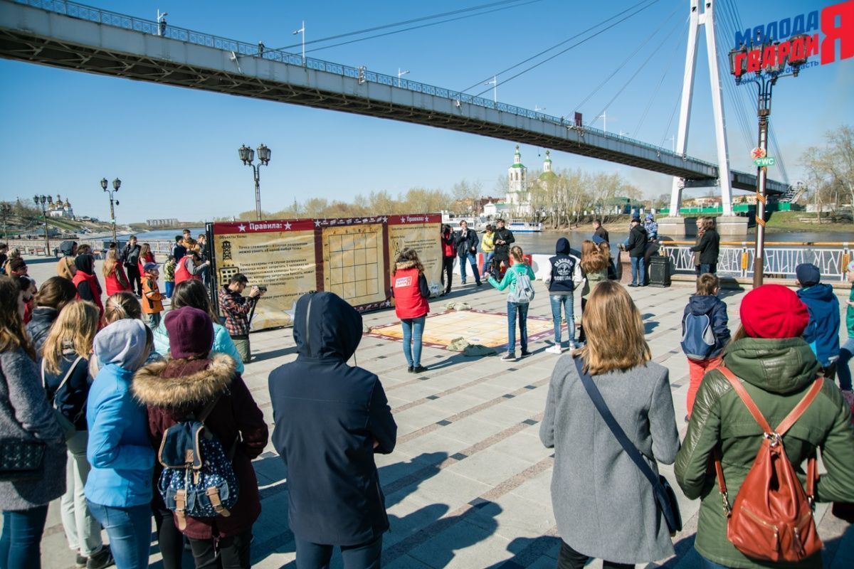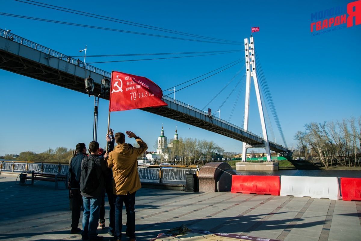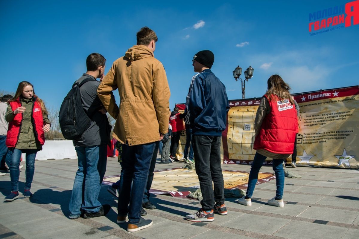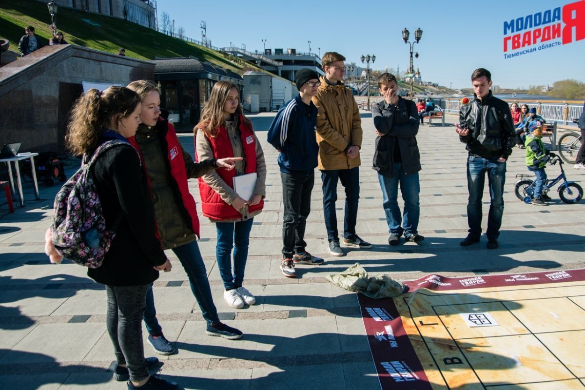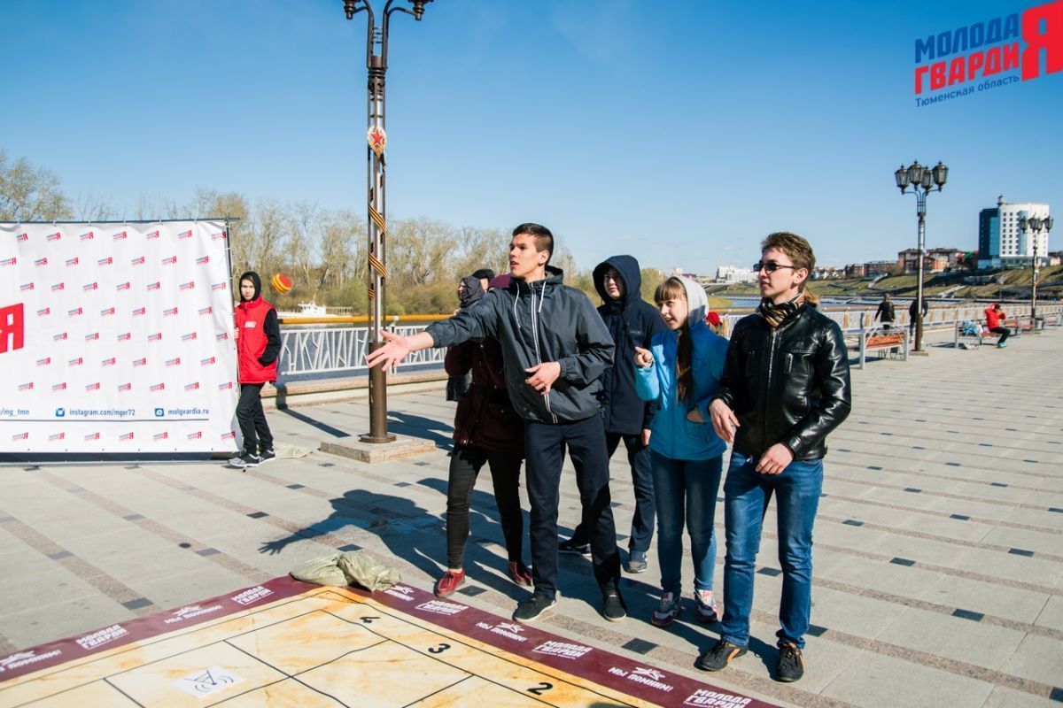 Игра «Знамя Победы» состоялась на Набережной города Тюмени. В ходе игры команды из 5 человек отвечали на тематические вопросы о Великой Отечественной войне и всеми силами попытались разрушить штаб и опорные пункты противника. Игра прошла на втором ярусе Набережной, лучшим командам были вручены призы и памятные подарки, а победители примут участие в водружении знамени Победы.
