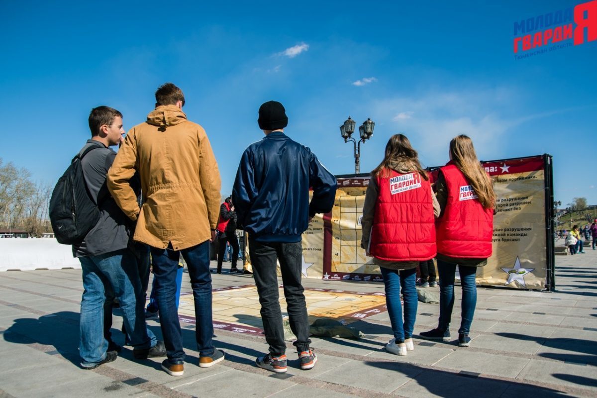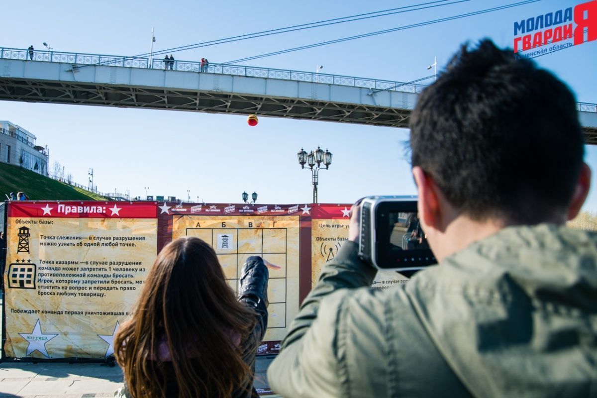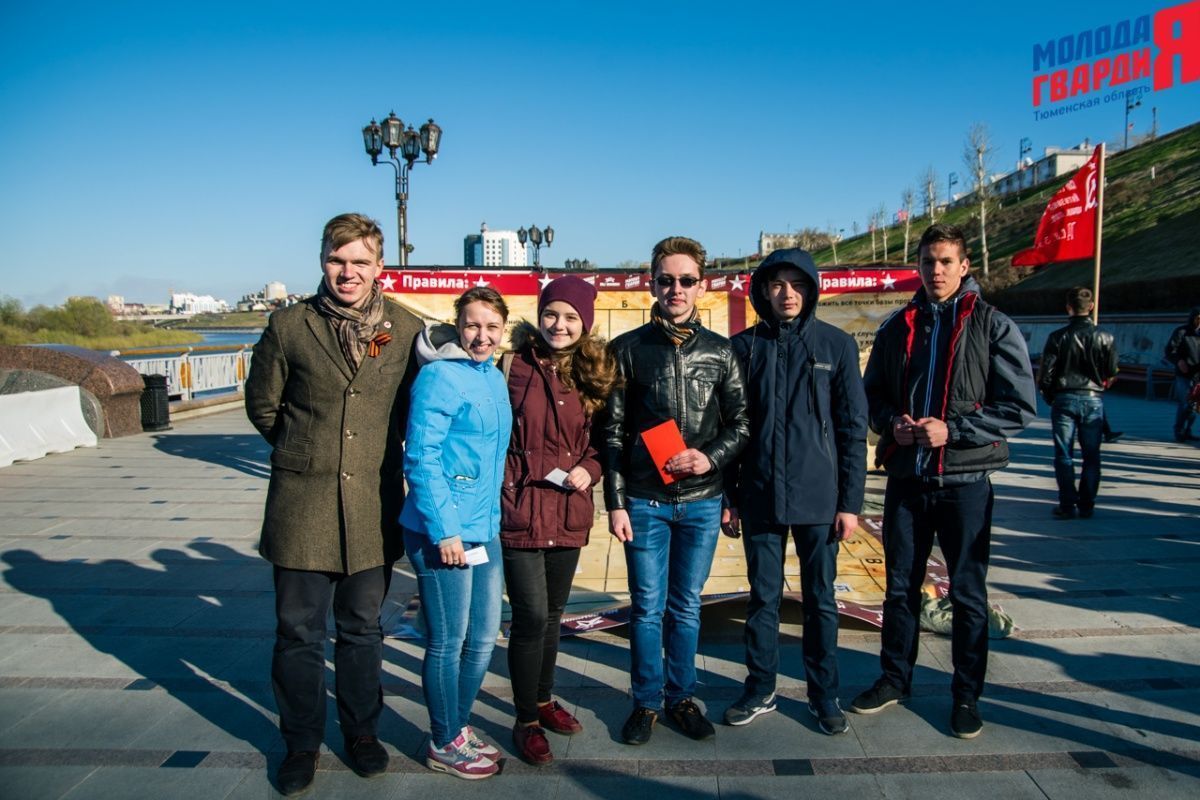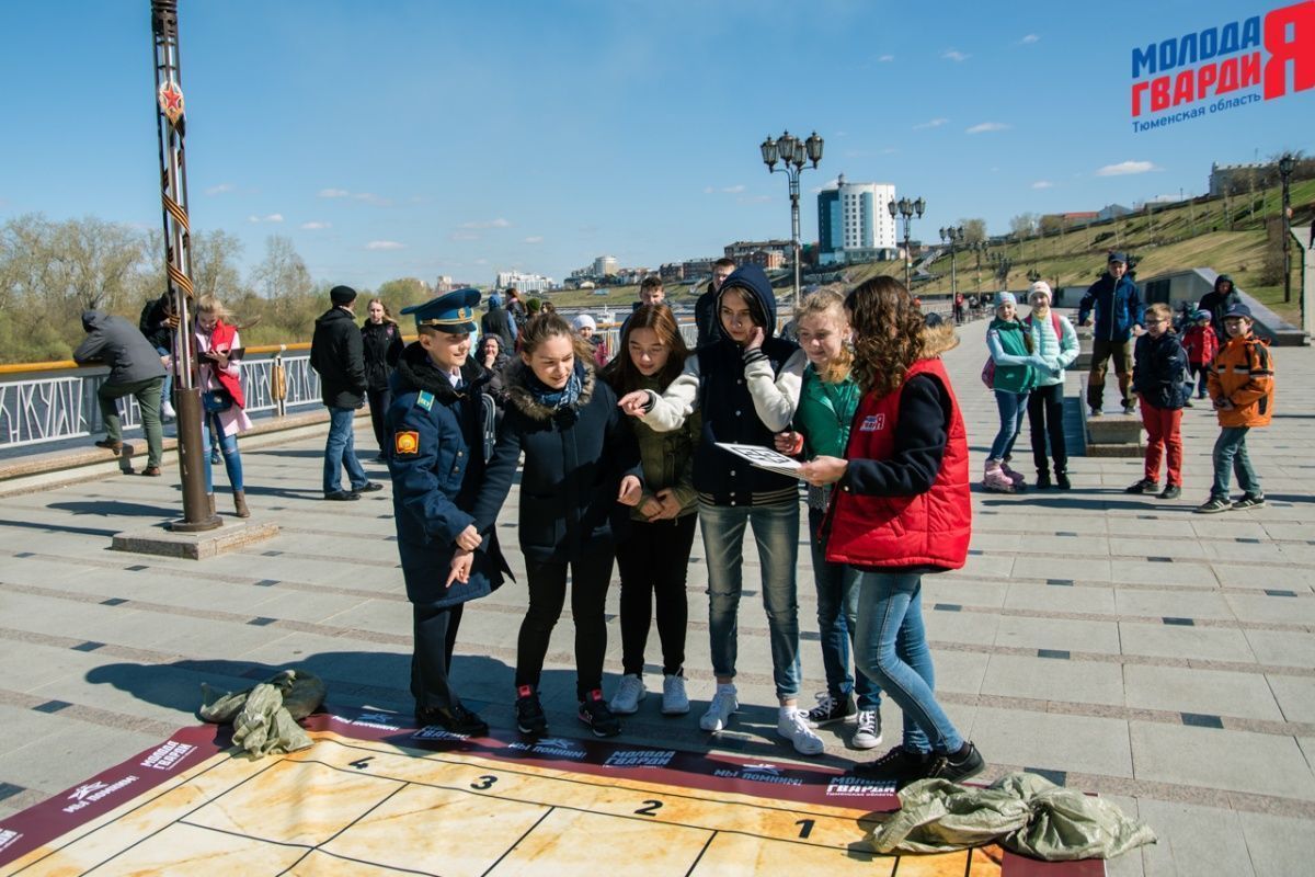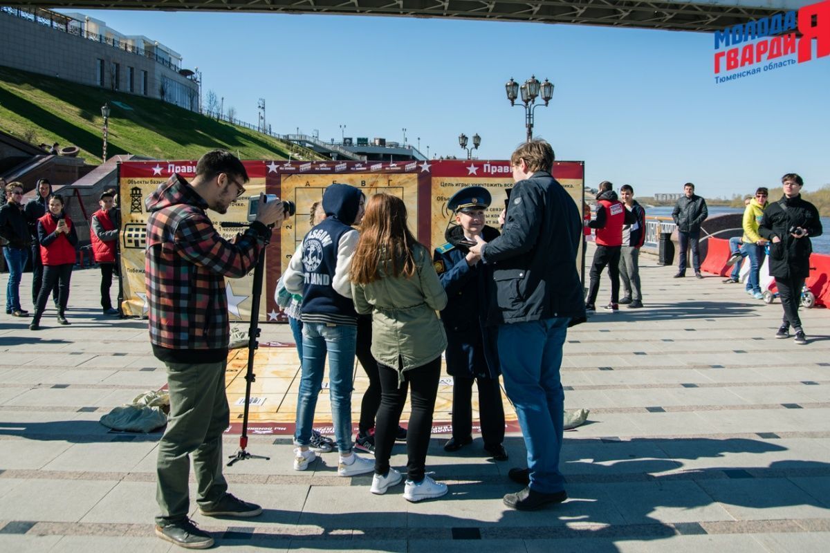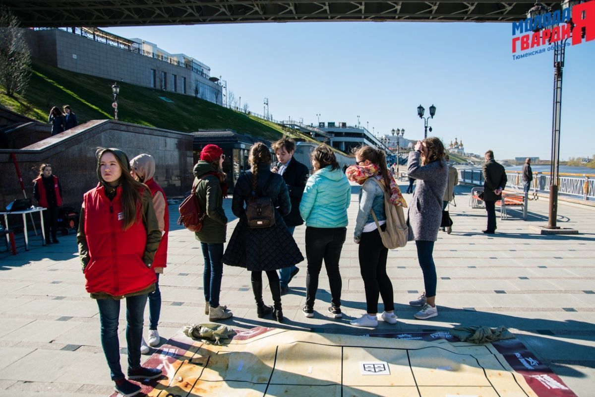 Игра «Знамя Победы» состоялась на Набережной города Тюмени. В ходе игры команды из 5 человек отвечали на тематические вопросы о Великой Отечественной войне и всеми силами попытались разрушить штаб и опорные пункты противника. Игра прошла на втором ярусе Набережной, лучшим командам были вручены призы и памятные подарки, а победители примут участие в водружении знамени Победы.