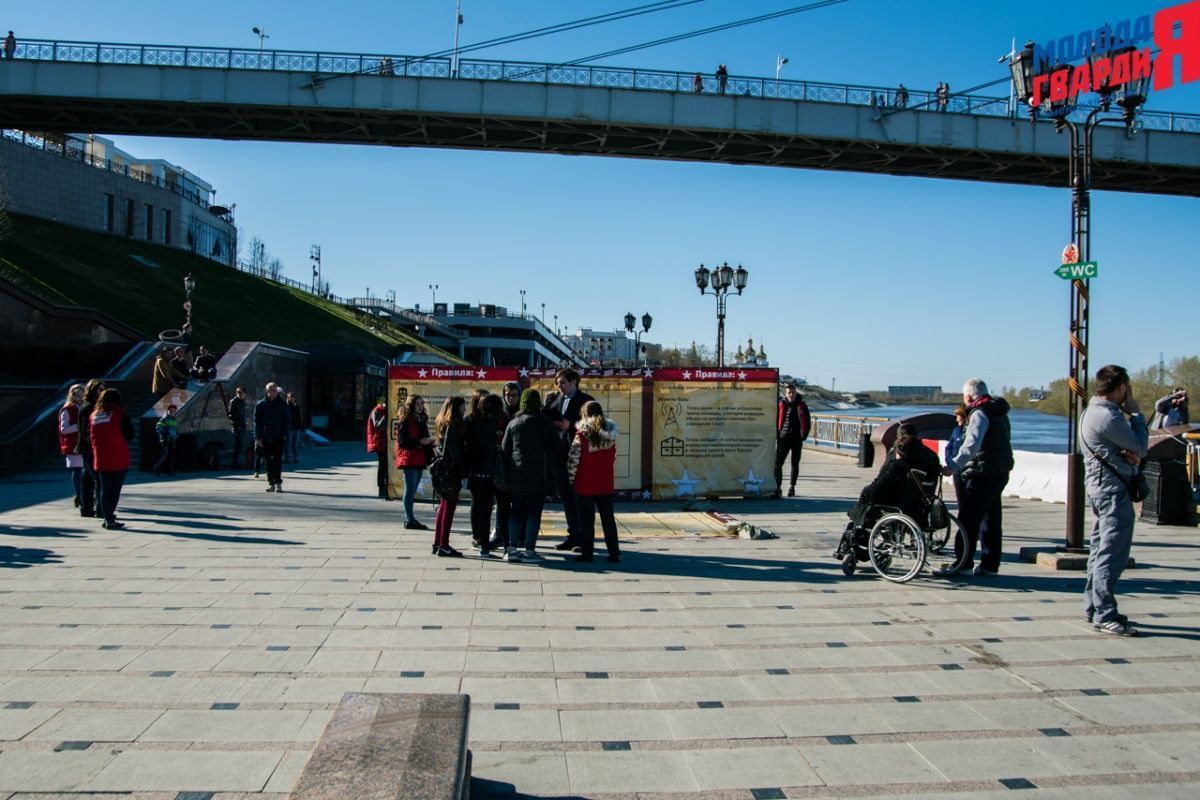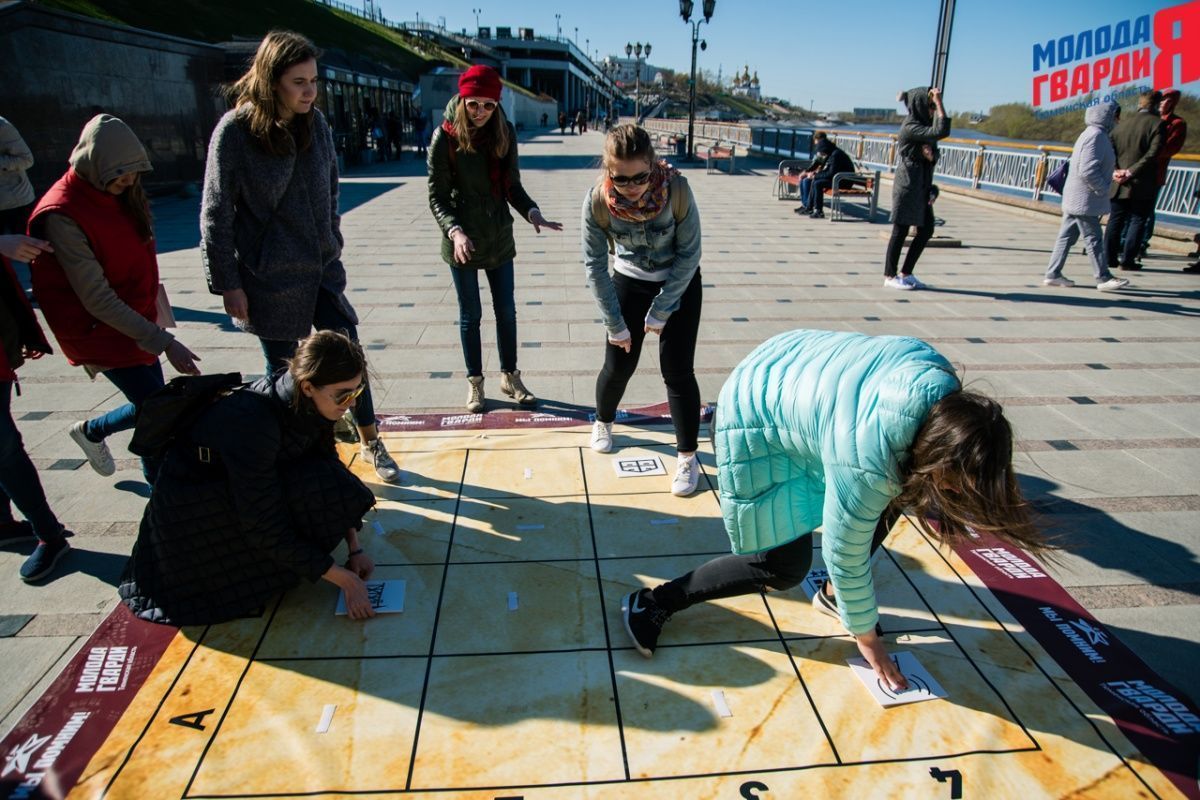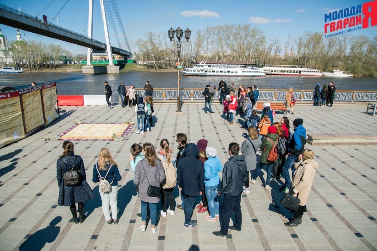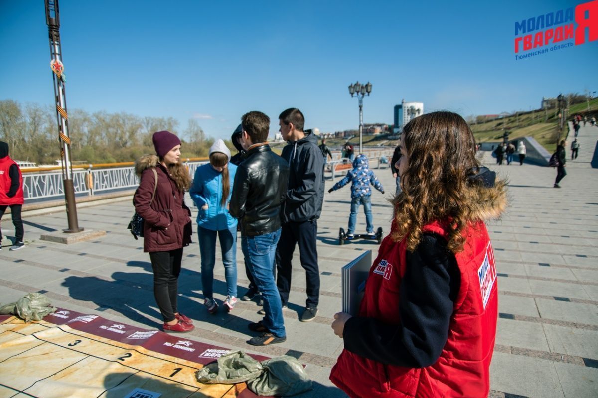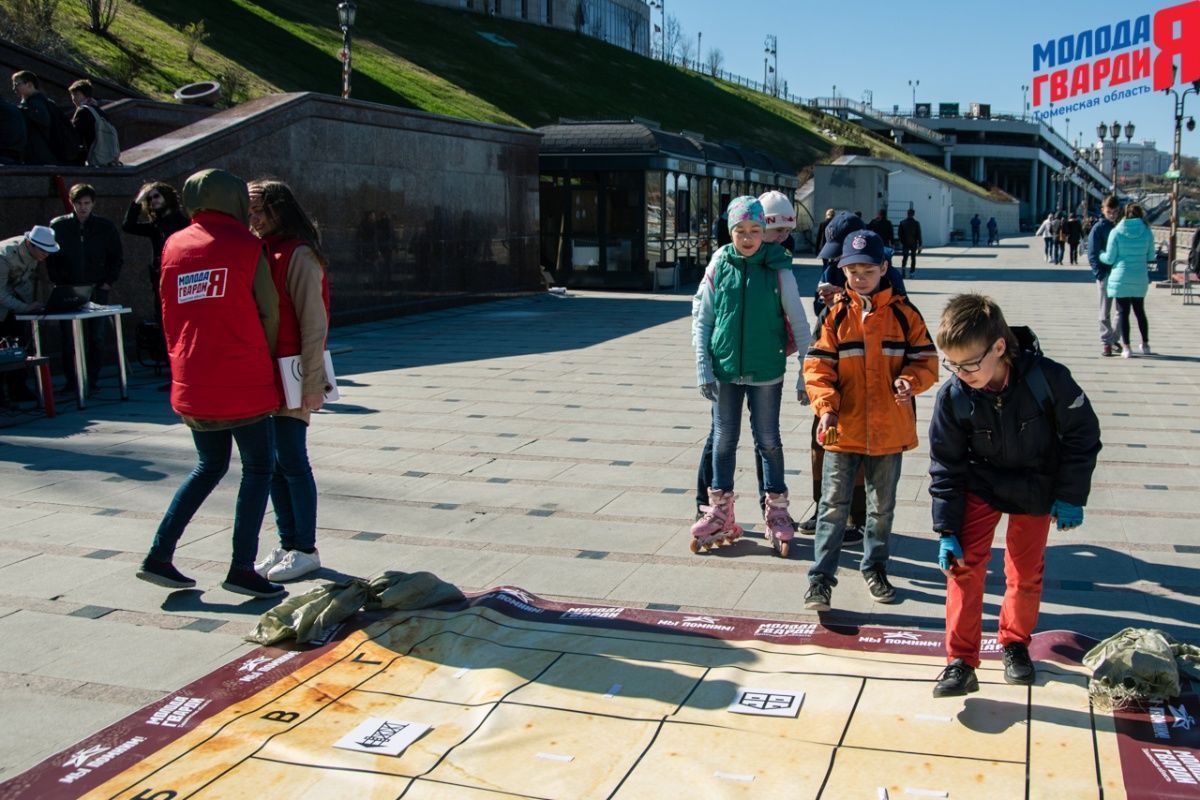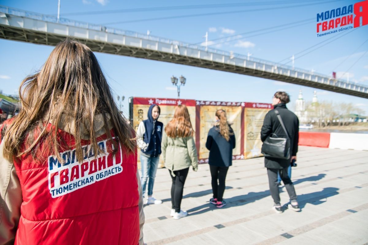 Игра «Знамя Победы» состоялась на Набережной города Тюмени. В ходе игры команды из 5 человек отвечали на тематические вопросы о Великой Отечественной войне и всеми силами попытались разрушить штаб и опорные пункты противника. Игра прошла на втором ярусе Набережной, лучшим командам были вручены призы и памятные подарки, а победители примут участие в водружении знамени Победы.