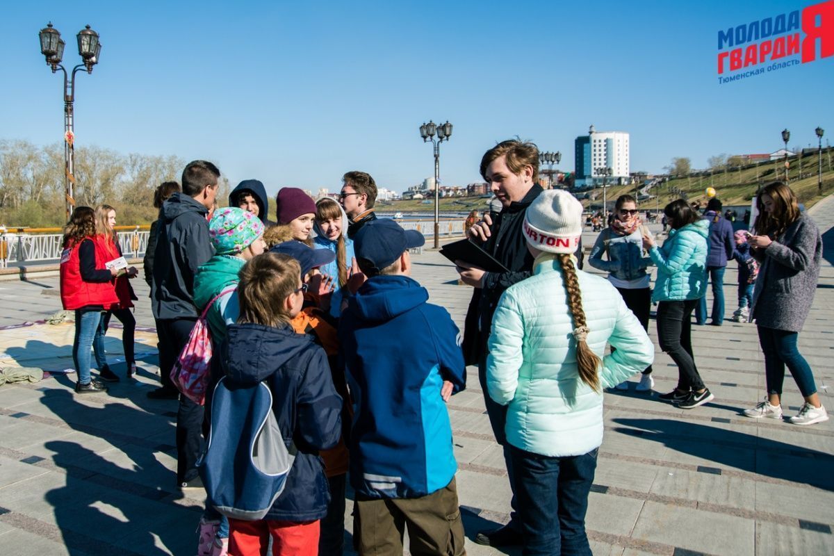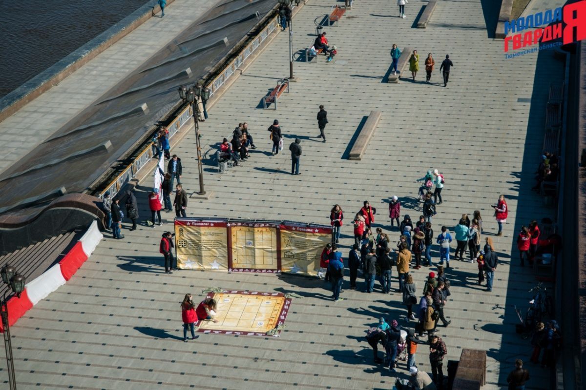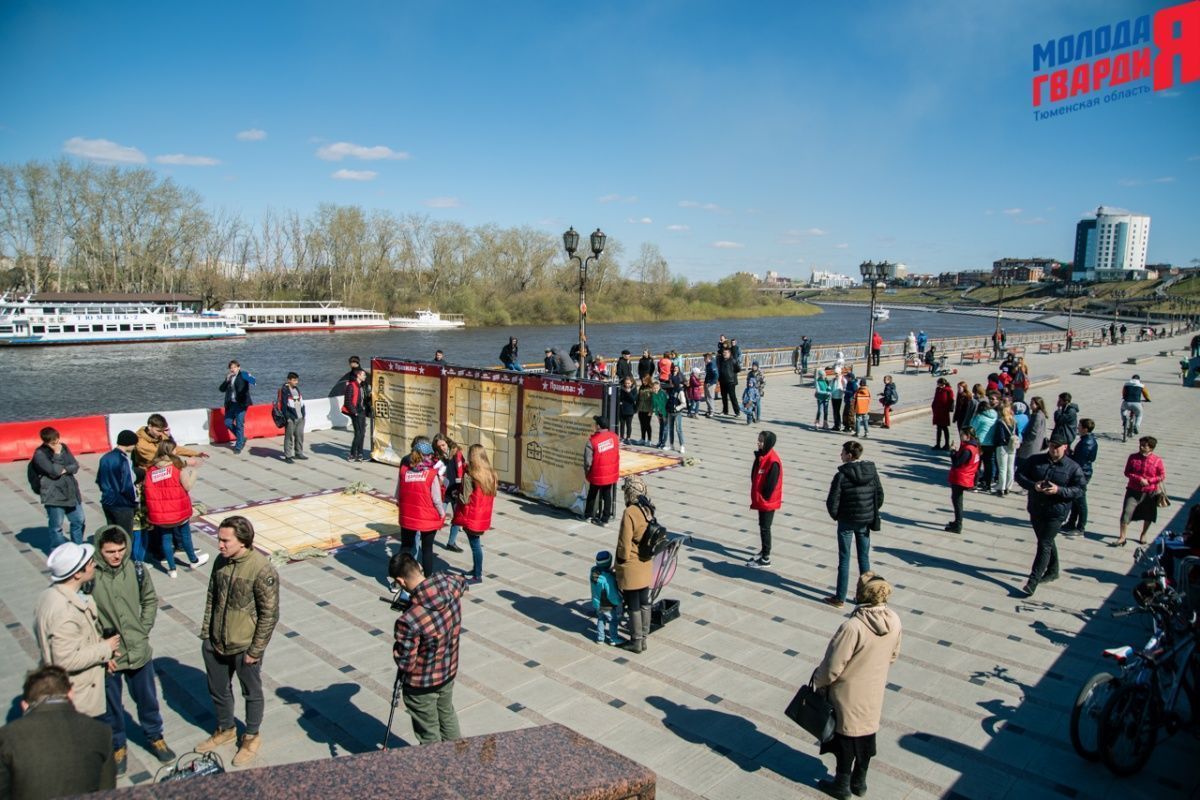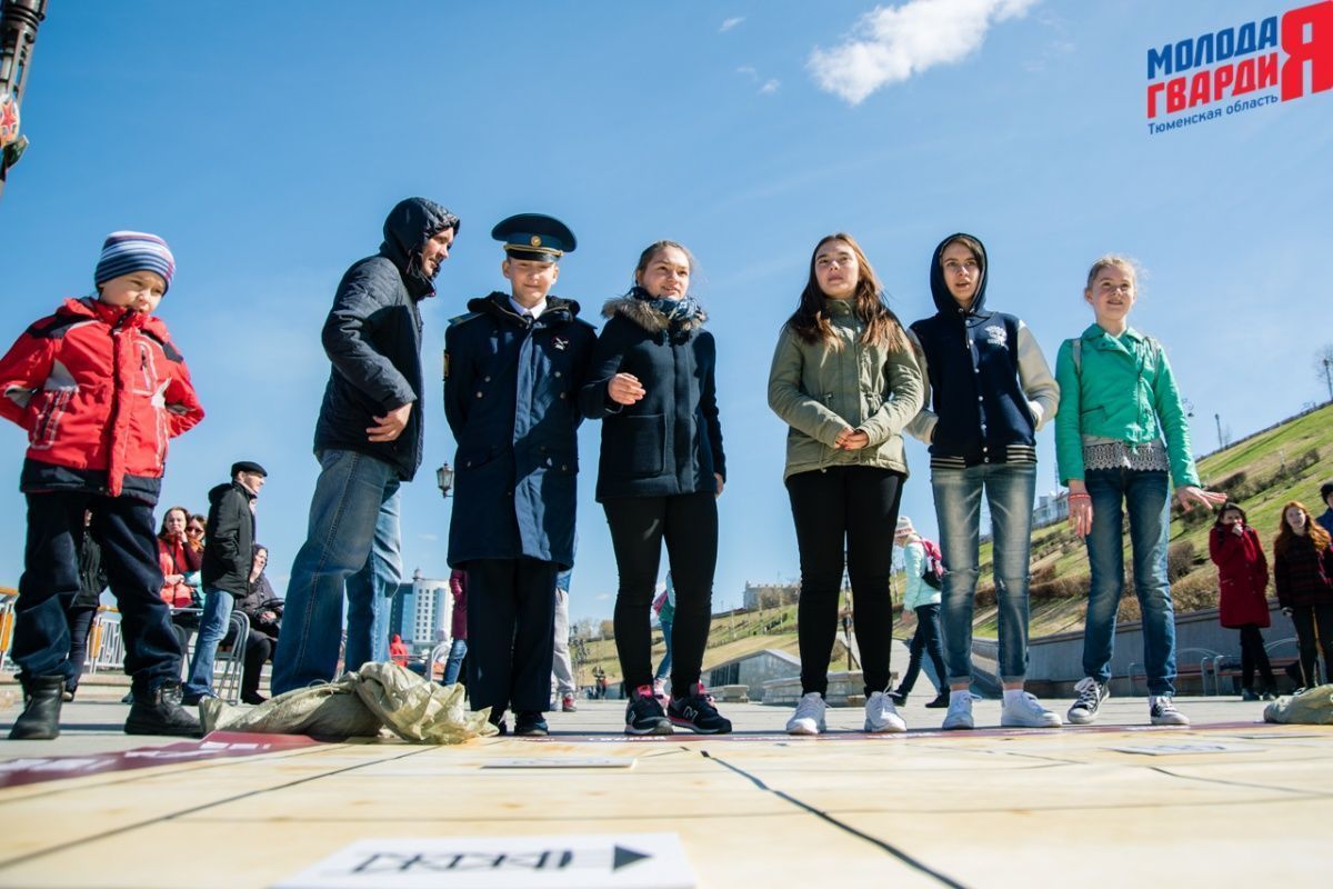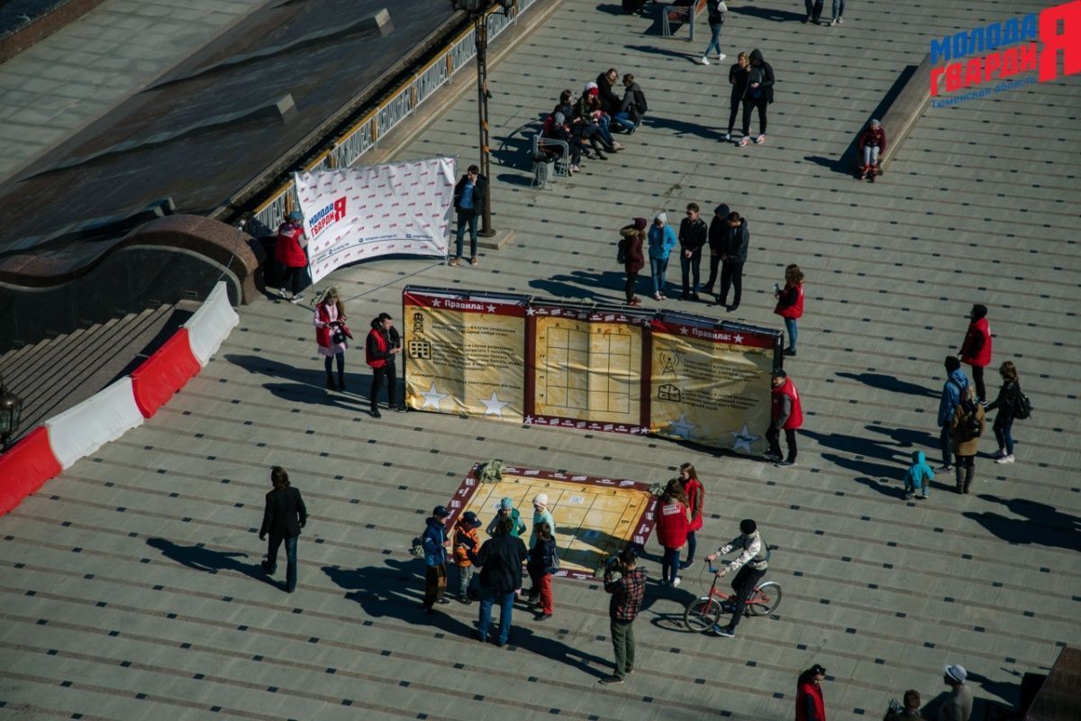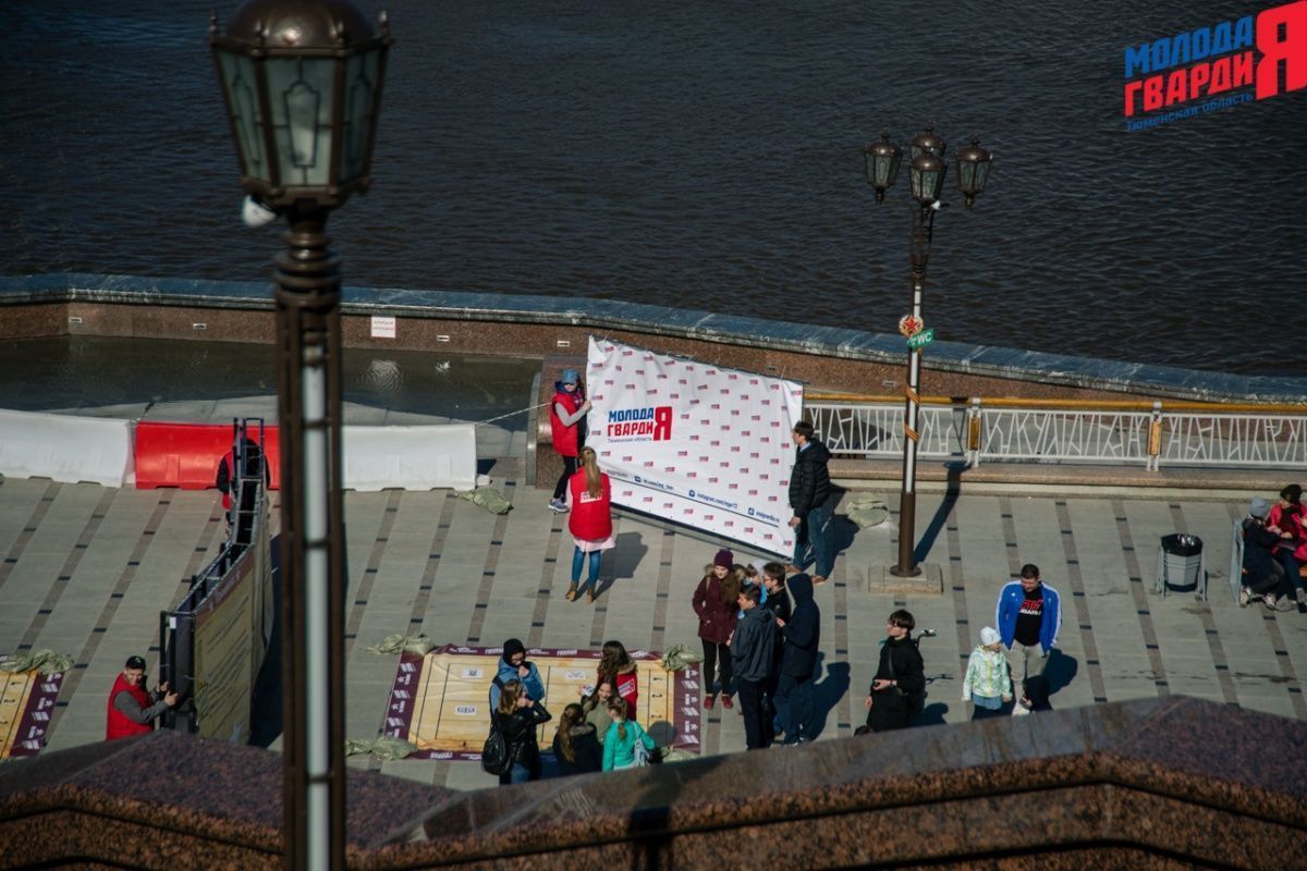 Игра «Знамя Победы» состоялась на Набережной города Тюмени. В ходе игры команды из 5 человек отвечали на тематические вопросы о Великой Отечественной войне и всеми силами попытались разрушить штаб и опорные пункты противника. Игра прошла на втором ярусе Набережной, лучшим командам были вручены призы и памятные подарки, а победители примут участие в водружении знамени Победы.