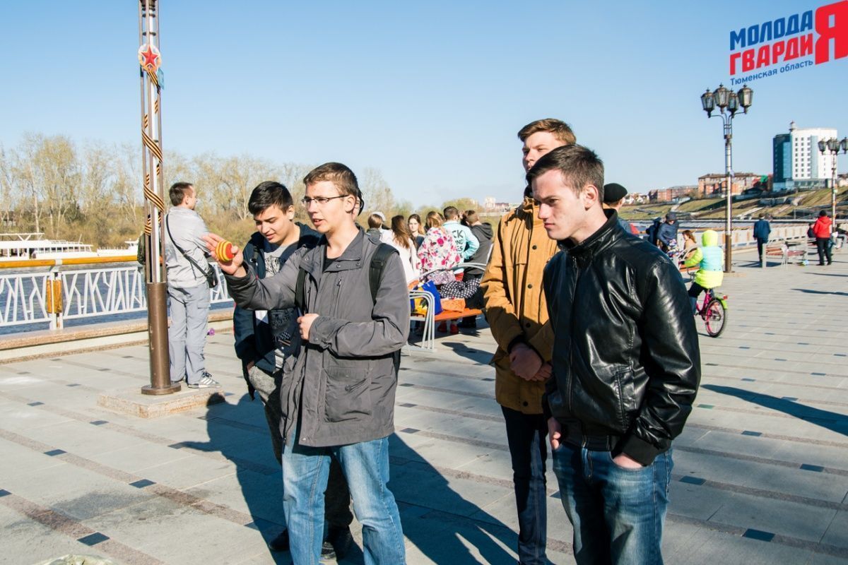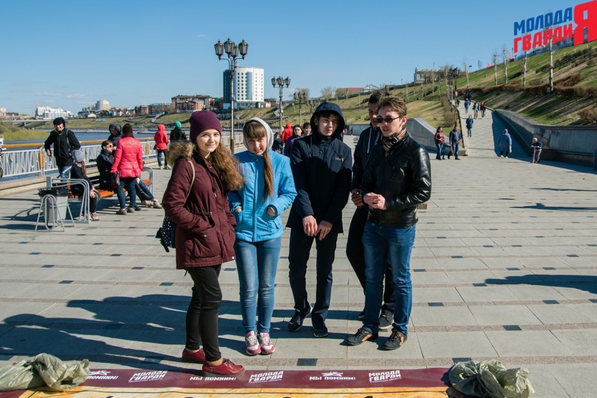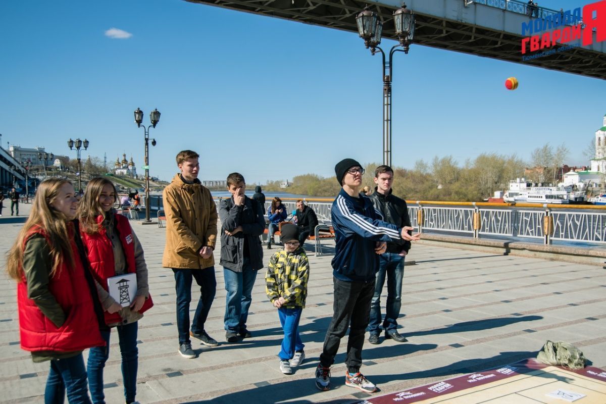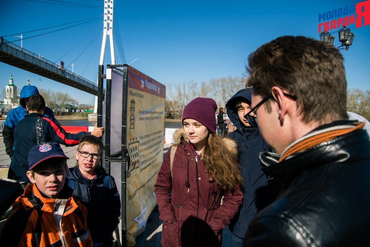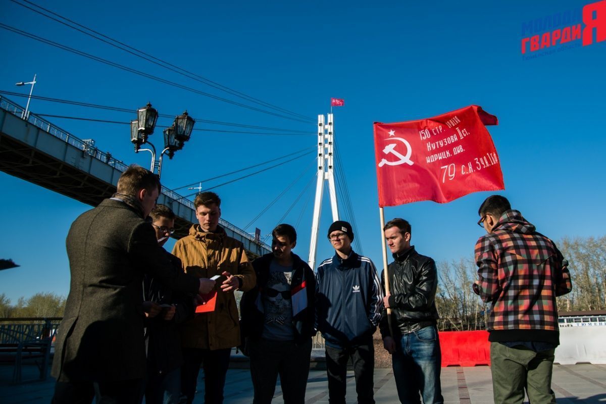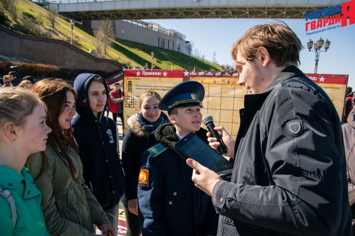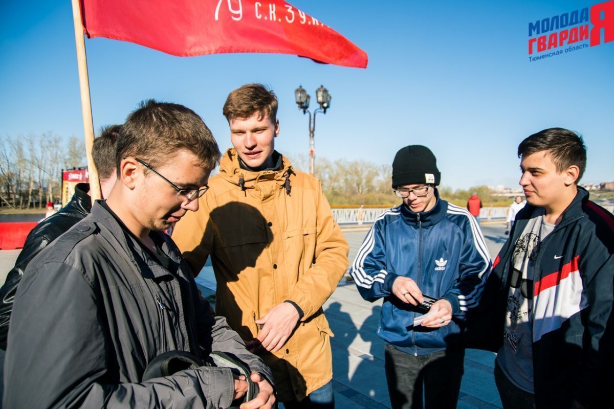 Игра «Знамя Победы» состоялась на Набережной города Тюмени. В ходе игры команды из 5 человек отвечали на тематические вопросы о Великой Отечественной войне и всеми силами попытались разрушить штаб и опорные пункты противника. Игра прошла на втором ярусе Набережной, лучшим командам были вручены призы и памятные подарки, а победители примут участие в водружении знамени Победы.