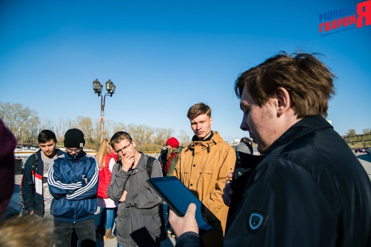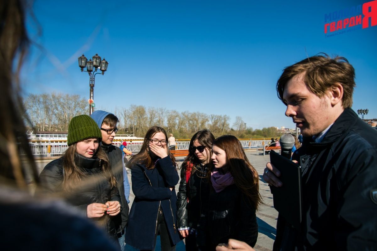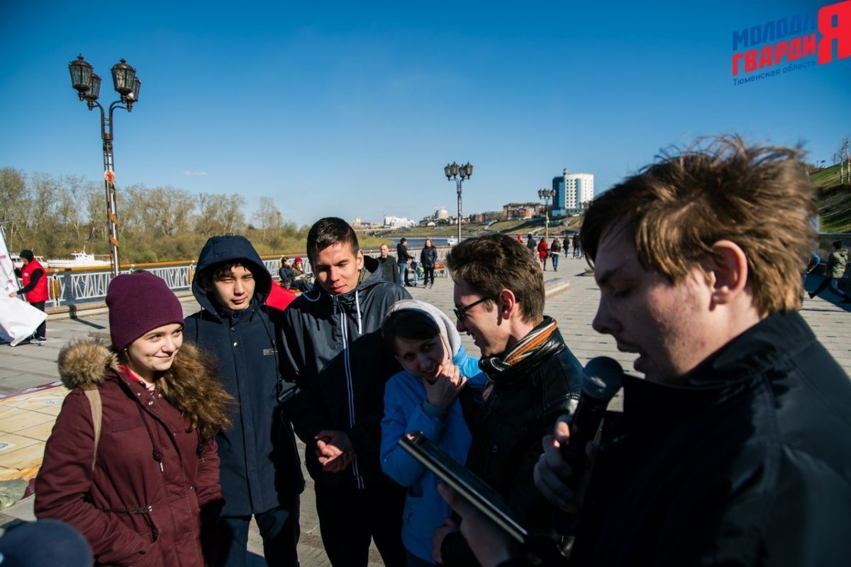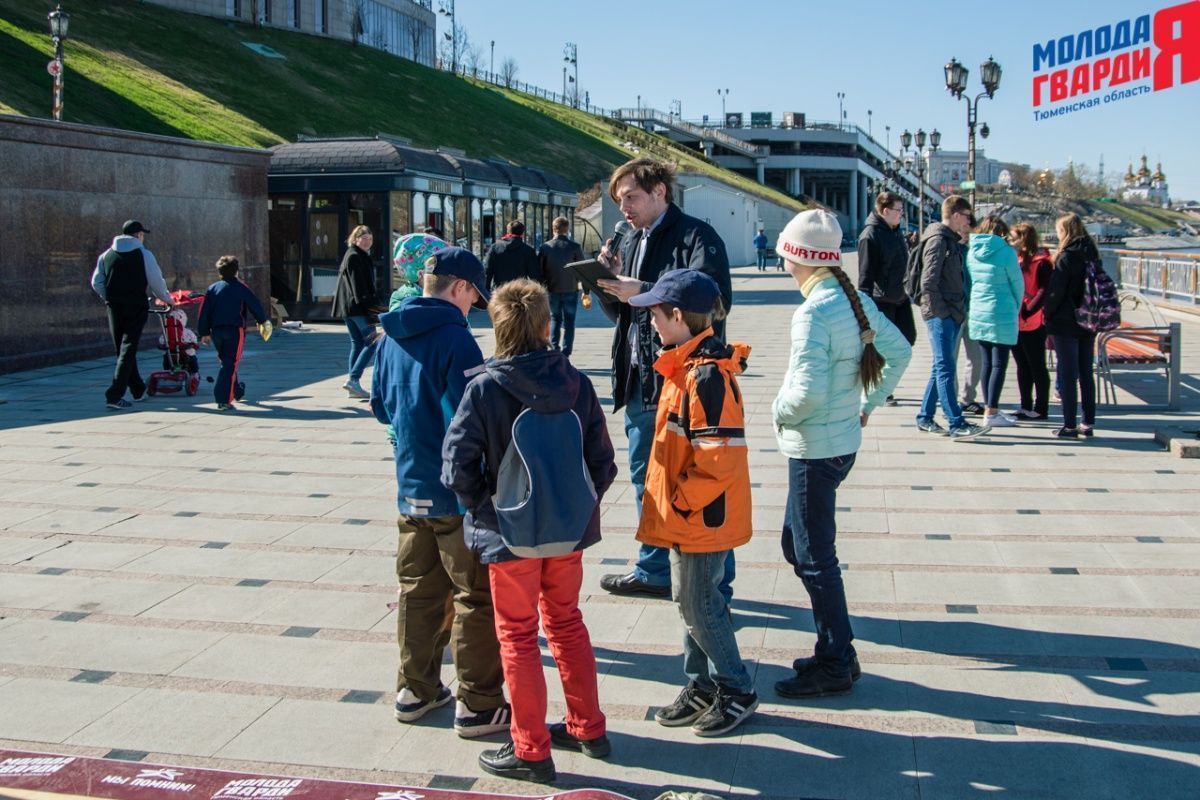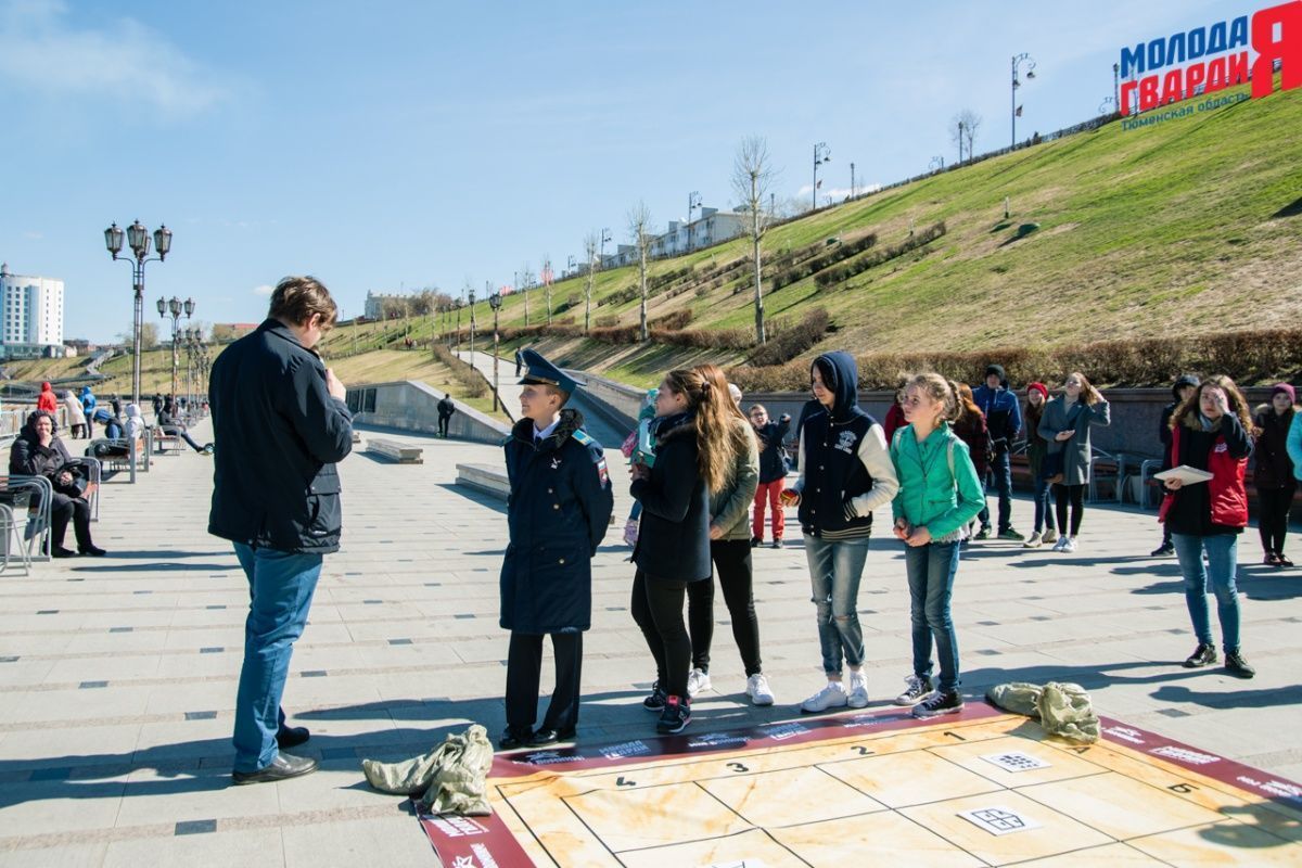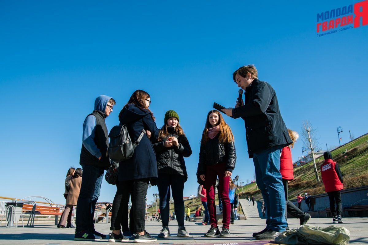 Игра «Знамя Победы» состоялась на Набережной города Тюмени. В ходе игры команды из 5 человек отвечали на тематические вопросы о Великой Отечественной войне и всеми силами попытались разрушить штаб и опорные пункты противника. Игра прошла на втором ярусе Набережной, лучшим командам были вручены призы и памятные подарки, а победители примут участие в водружении знамени Победы.