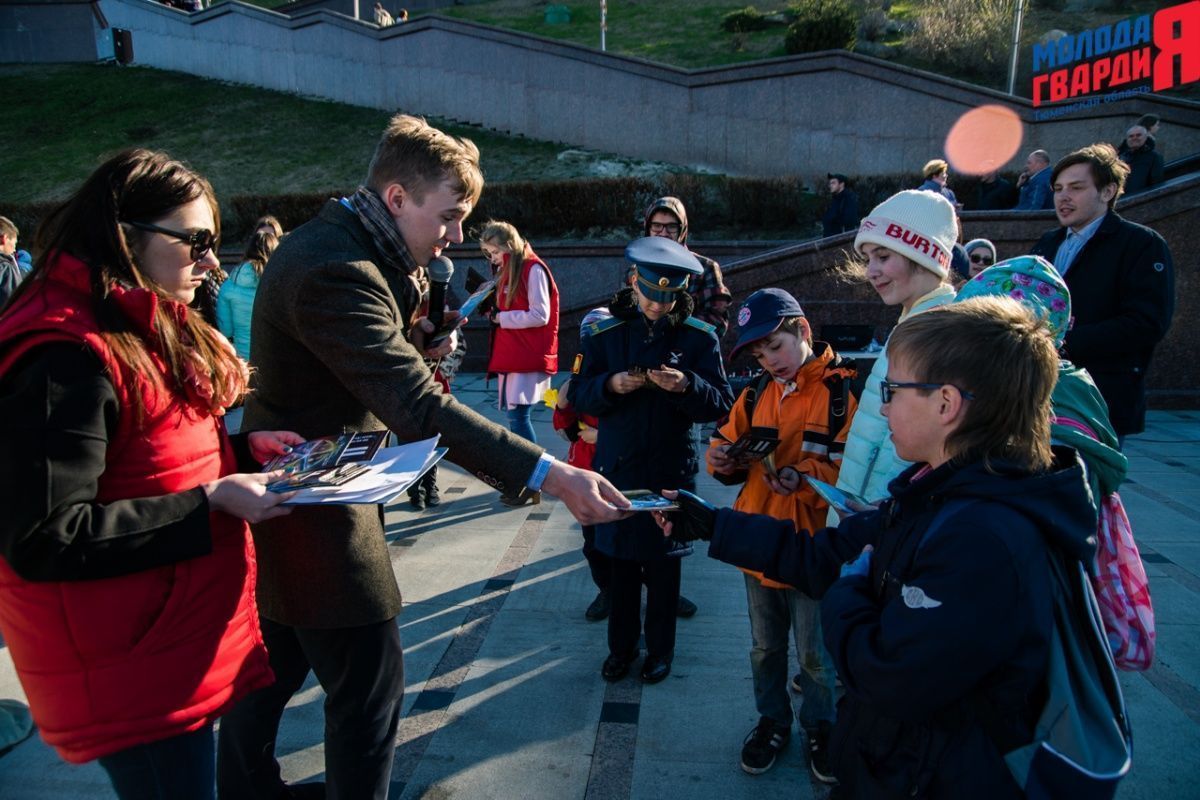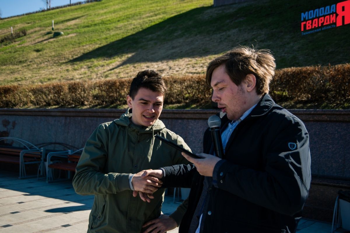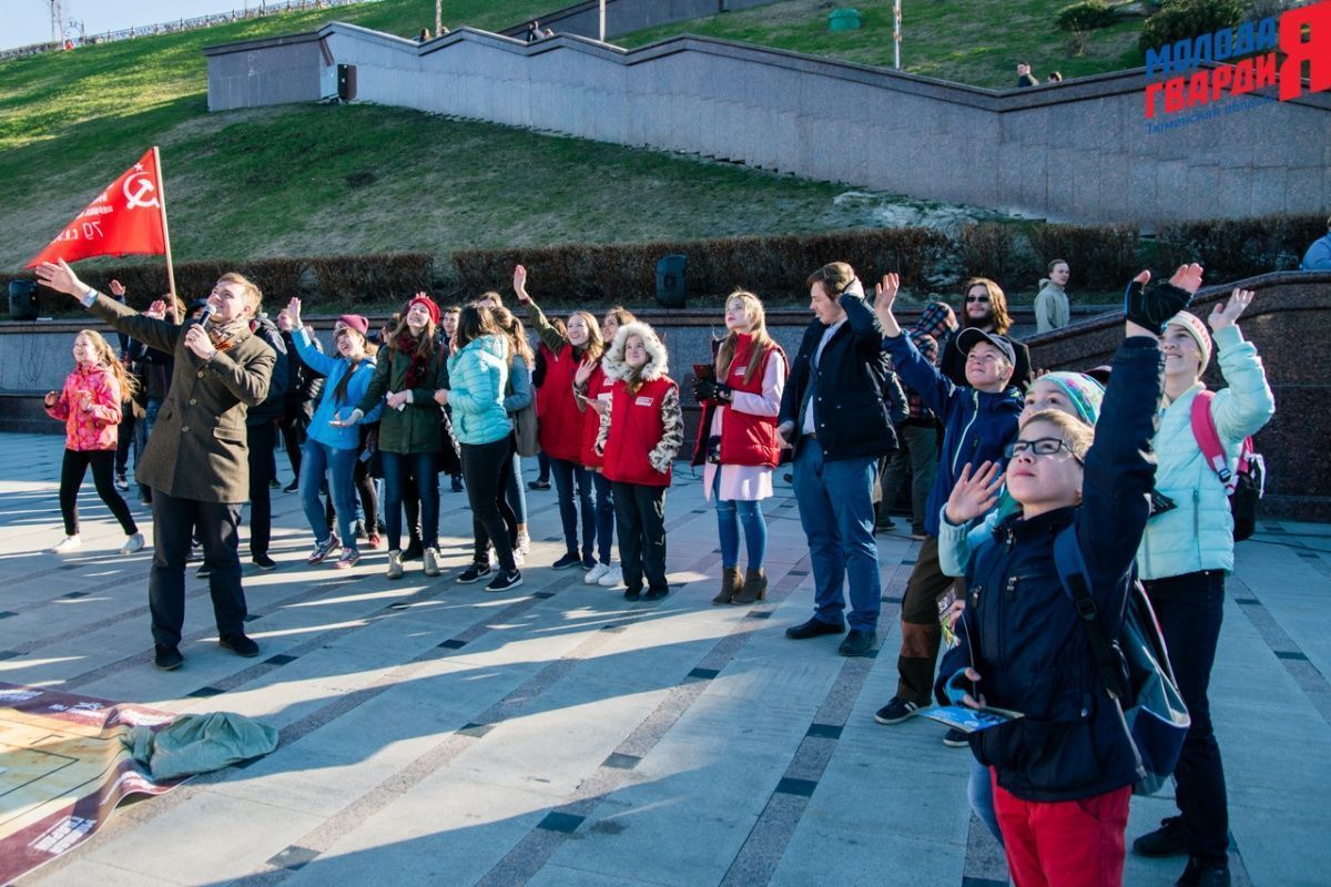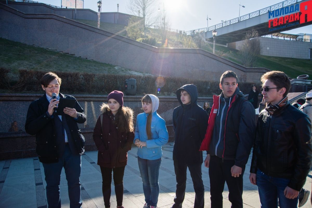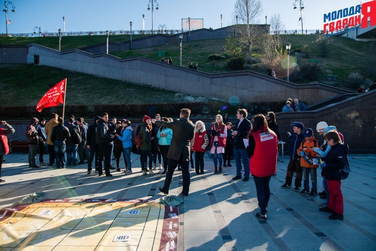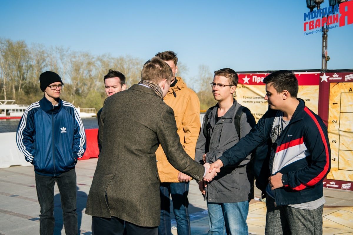 Игра «Знамя Победы» состоялась на Набережной города Тюмени. В ходе игры команды из 5 человек отвечали на тематические вопросы о Великой Отечественной войне и всеми силами попытались разрушить штаб и опорные пункты противника. Игра прошла на втором ярусе Набережной, лучшим командам были вручены призы и памятные подарки, а победители примут участие в водружении знамени Победы.